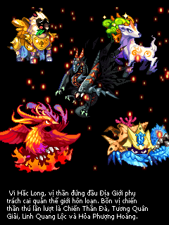 Thiên Địa chi sơ, vạn năm về trước có hai vị thần, một người duy trì trật tự, một người cai quản thế giới hỗn loạn, kiềm chế lẫn nhau, duy trì cân bằng của thế giới. Bạch Long, vị thần đứng đầu Thiên Giới phụ trách cai quản trật tự. Ba vị thủ hộ thánh thú lần lượt là Lôi Kỳ Lân, Tinh Vân Hạc cùng Minh Vương Long. Hắc Long, vị thần đứng đầu Địa Giới phụ trách cai quản thế giới hỗn loạn. Bốn vị chiến thần thú lần lượt là Chiến Thần Đà, Tương Quân Giải, Linh Quang Lộc và Hỏa Phượng Hoàng